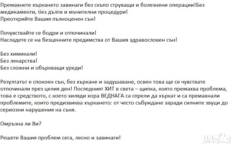Премахнете завинаги неприятното хъркане – без дълги и неприятни процедури, без медикаменти и скъпи операции.