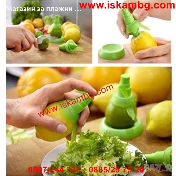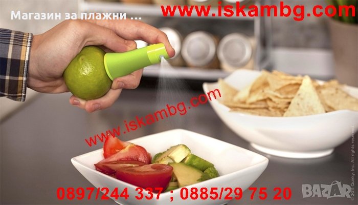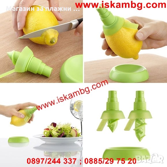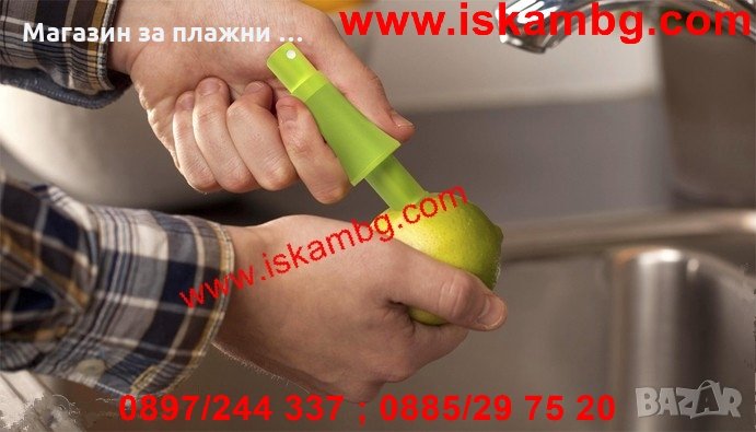 Просто трябва да размачкате малко цитрусовия плод, да отрежете единия му край,след това там да завиете този спрей и да го държите вертикално, докато започне да пръска. Така ще овкусите салатите, ястията и ще придадете на коктейлите си страхотен вкус- бързо, ефектно и лесно!