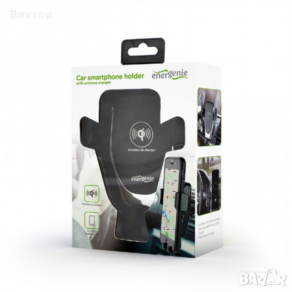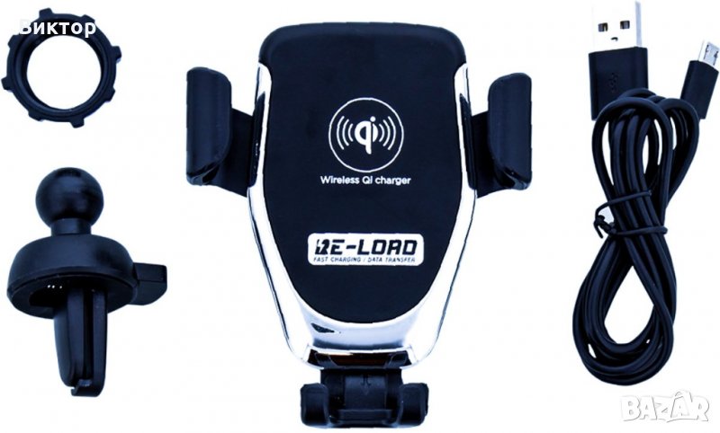 Стойка за смартфон за кола с безжично бързо зарядно Qi, 10 W → Обява 28444021
