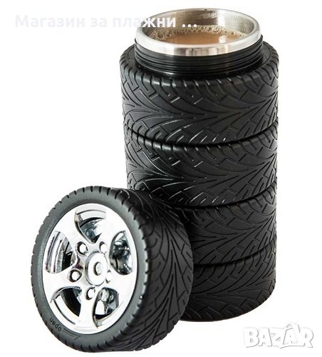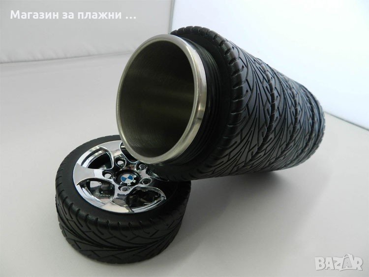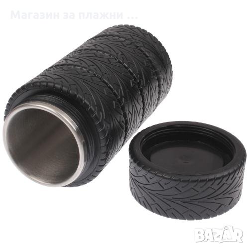 Стабилна, здрава, тежаща на мястото си, термо чашата „TYRE CUP” ще стане любимата ви, ако във вените ви тече високооктанов бензин!!! Благодарение на двойните стени с вакуумно пространство между тях и „изолацията от автомобилни гуми” вашата напитка ще остане дълго време топла в термоса, за да я консумирате с удоволствие и „без мярка”. Качествено силиконово уплътнение, предотвратява разливането на течността.