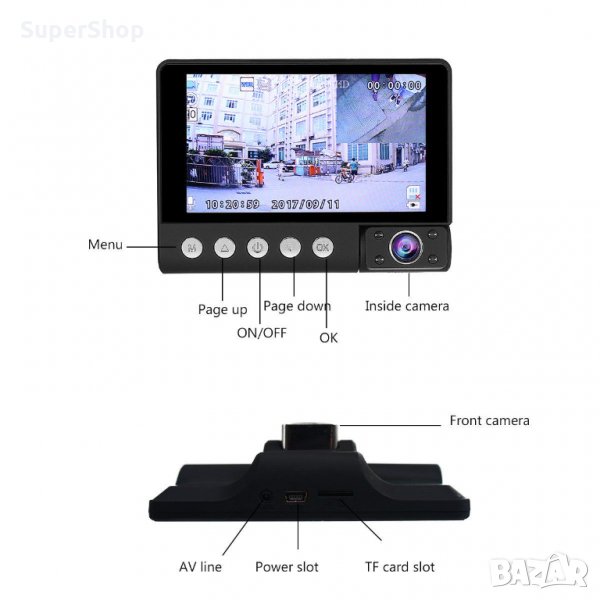 Двойна DVR камера 4" дисплей 1080p + камера за задно виждане