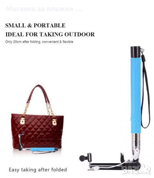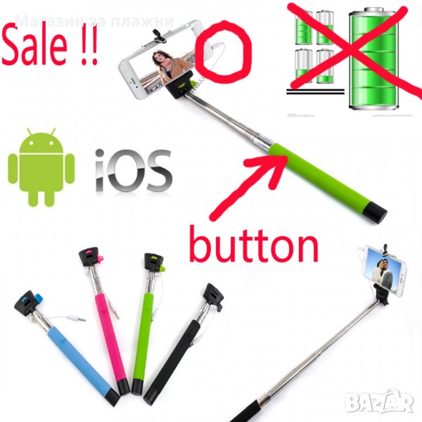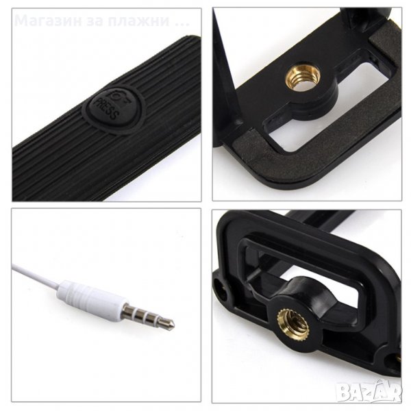 Ако обичате да запечатвате любимите моменти на Вас и Вашите близки, то този селфи стик ще ви очарова! Вече Не ви е необходим bluetooth; Няма нужда от инсталиране на приложения; Няма нужда да се зарежда; Всичко което трябва да направите е да поставите буксата на кабела в буксата за слушалки на Вашия телефон. Селфи стикът е новия спътник за Вашият телефон. Комплекта включва: 1бр. Монопод ( пръчка ) с аудио кабел 3.5мм. 1бр. Щипка ( дръжач ) за телефон, камера или фотоапарат 1бр. Лента за китка Регулиране ширината на щипката ( държача за телефона или фотоапарата ) от 5.5 до 8.5см.; Възможност за регулиране на дължината от 24 до 110см.