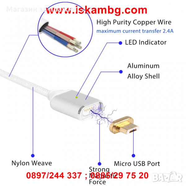 Зареждайте телефона си по-лесно от всякога. Магнитно зарядно устройство за Андроидни телефони - универсално. Подходящ за всички видове телефони като Samsung, LG, HTC, Sony, Alcatel, Lenovo, Huawei, Xiaomi и други устройства с Micro USB порт.