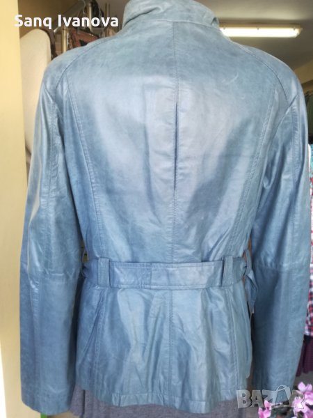 Дамско яке, еко кожа,цвят пастелно синьо сиво,размер 42, гръдна обиколка 114см