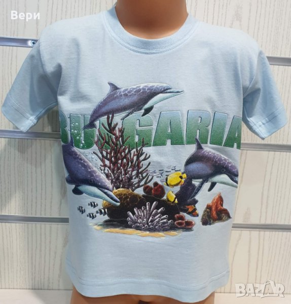 Нова светлосиня детска тениска с трансферен печат Делфини, Морско дъно