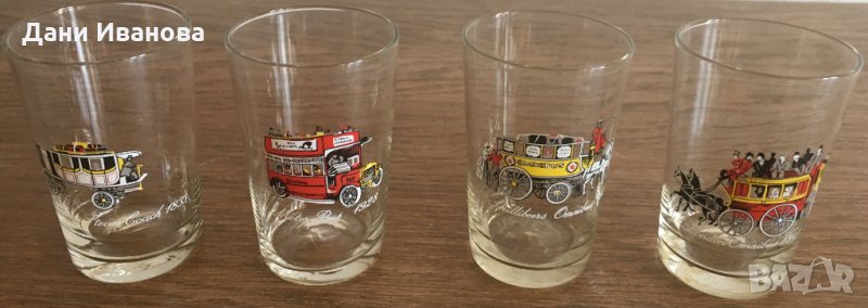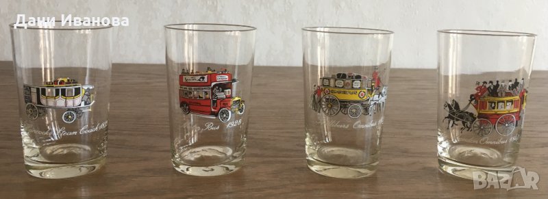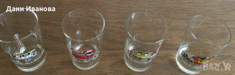 4 стъклени чашки за аператив с ретро автомобили → Обява 28457966