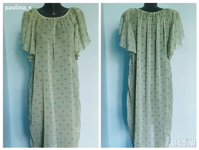 2️⃣ Колаж / M / 2XL - Зелена рокля тип туника "Coop". Цената е крайна 34,99лв. Нова, без дефекти и етикет, красива прозрачна рокля тип плажна туника с крилати ръкави, нова без етикет. Може да се носи над рокли или бюстиета, поради прозрачността. Без дефекти, етикет и еластичност.