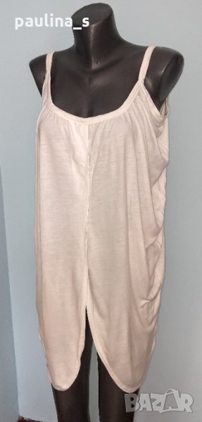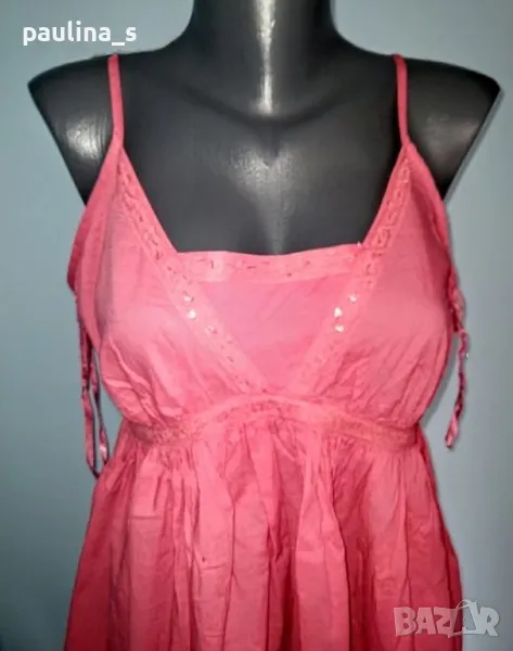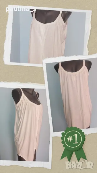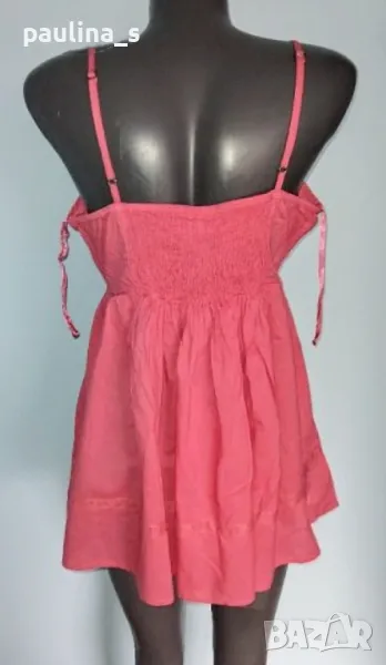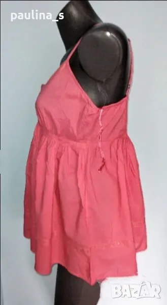 2. Колаж / L / 2XL - "Next". Цената е крайна 19,99лв. Памучна туника с презрамки, в цвят неонова праскова с декорацииот памучна дантела и пайети. Нова е, без дефекти и етикет. Горната част е като бюстие, фиксирано с хоризонтални ластици отзад. Презрамките се регулират по дължина индивидуално. Долу се разкроява и завършва свободно, прикривайки ханша. Усетихте ли прохладата? Аз - да!