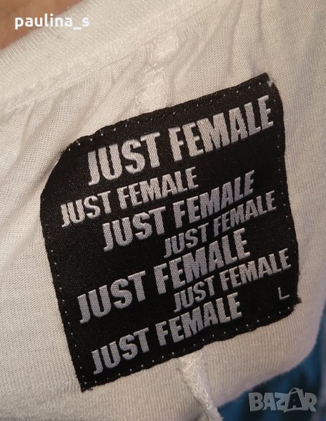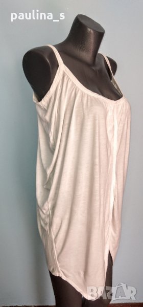 1. Колаж / L / 3XL - "Just female". Цената е крайна 19,99лв. Бяла туника от еластично трико - вискоза. Моделът е с наборни дипли и се раздвоява в издължената предна част като тога. Материята е еластична и покрива няколко размера, същевременно и много приятна за допир до кожата. Без дефекти и етикет, като нова е, една бройка.