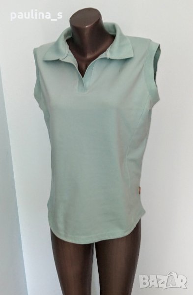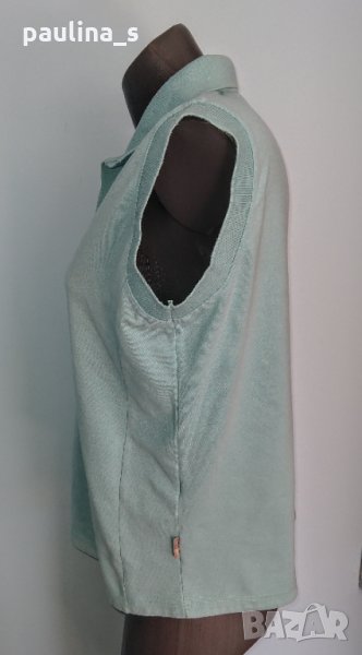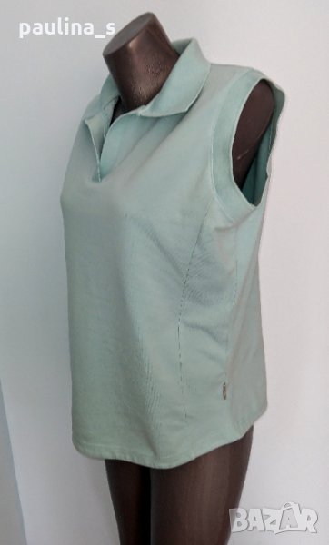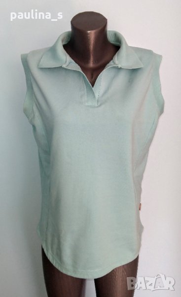 1️⃣ . 2XL / 4XL - "Casa Blanca". Цената е крайна 14,99лв / 7,5 евро . Зелена спортна блуза с яка, без ръкави. Материята е памучно вафлено трико, еластична и покрива няколко размера. Цветът е Мента. Моделът е втален с подсилена долна извивка.