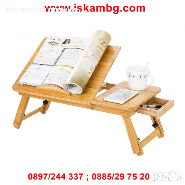 Здрава и стабилна! Универсалната бамбукова масичка ти дава възможност да работиш комфортно с лаптопа си навсякъде. Вече може да сърфираш удобно навсякъде: в леглото, на пода, в парка и на още много други места.