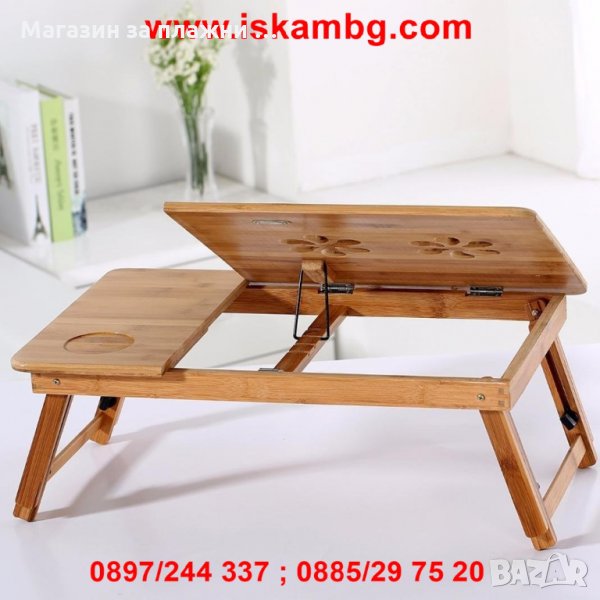 Бамбукова масичка за лаптоп с охладител - предлага се в два размера / стандартен и голям /