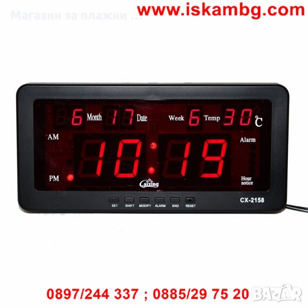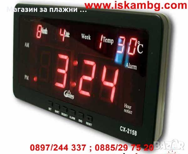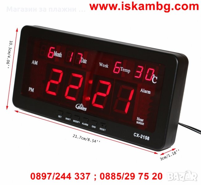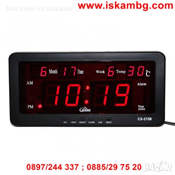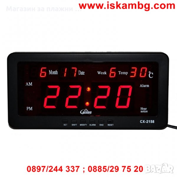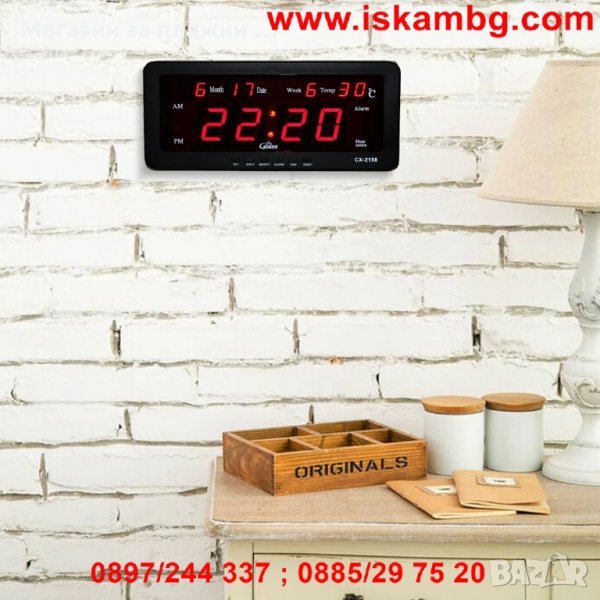 Часовник Caixing CX-2158 със светещи цифри с възможност за закачане на стена или за бюро, маса