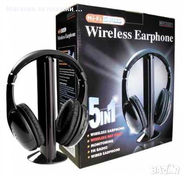 Wireless 5 в 1 безжични слушалки за MP3, компютър, телевизия, CD, DVD