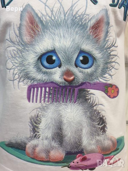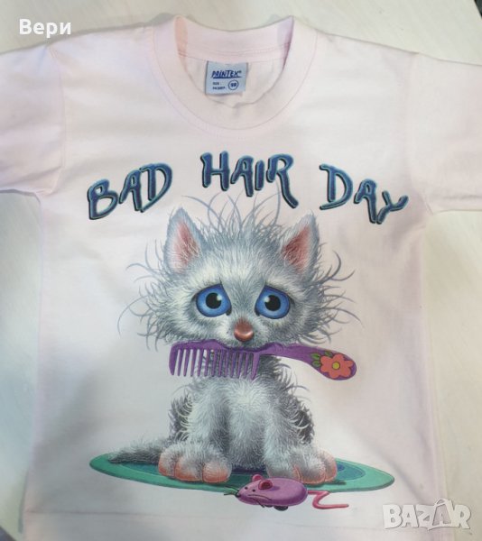 Нова детска тениска с трансферен печат Котенце Bad Hair Day