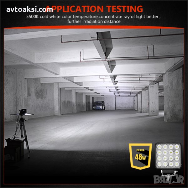 Диодният халоген е 48W светещ в ярко бяла светлина.