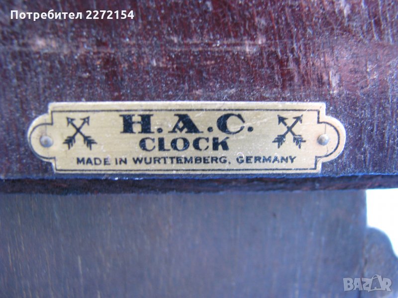 Над 110 годишен,изработен в Германия град Вюртемберг известен с военна промишленост от най високо качество.Часовникът е в запазено и точно работещо състояние,бие на 1/2 и на цял час.Посребрен циферблат и оригинален ключ за навиване.Размерите му са показани на снимките
