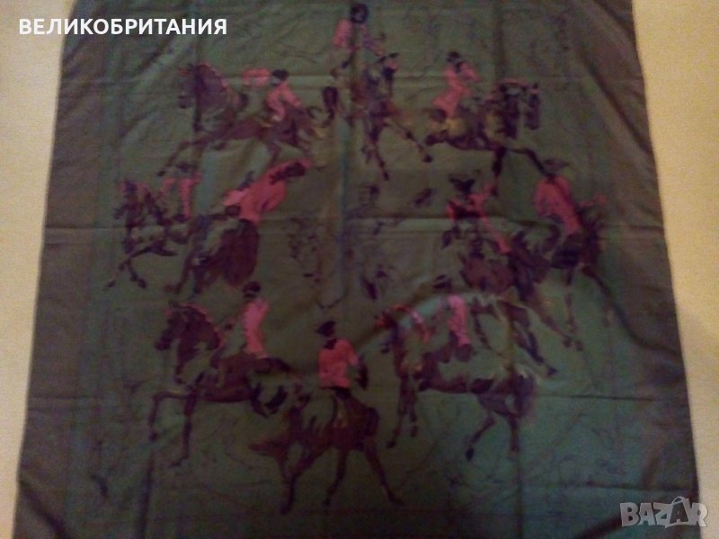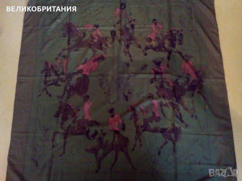 Уникален френски шал, ръчна изработка. 100% коприна,маслено зелено. Размер 120/120 сантиметра. 214