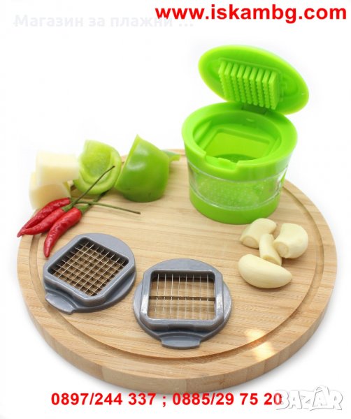 Подходящ за рязане и на други видове зеленчуци: чушки, моркови, лук и др., а също така и на ядки: орехи, лешници и др.; по този начин може да приготвите разнообразни зеленчукови миксове, или да гарнирате желан десерт с ядки по избор.