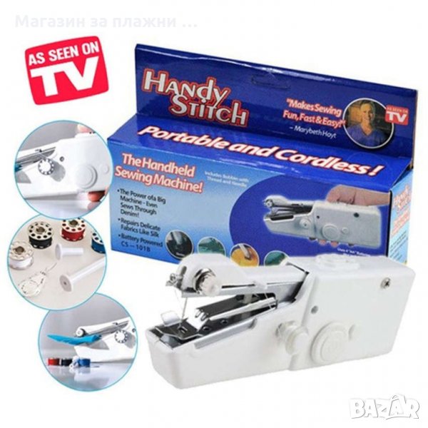 - Идеалното решение е портативна шевна машина Handy Stitch. Тя е компактна – може да я държите само с една ръка, лесна за пренасяне и изключително ефективна.