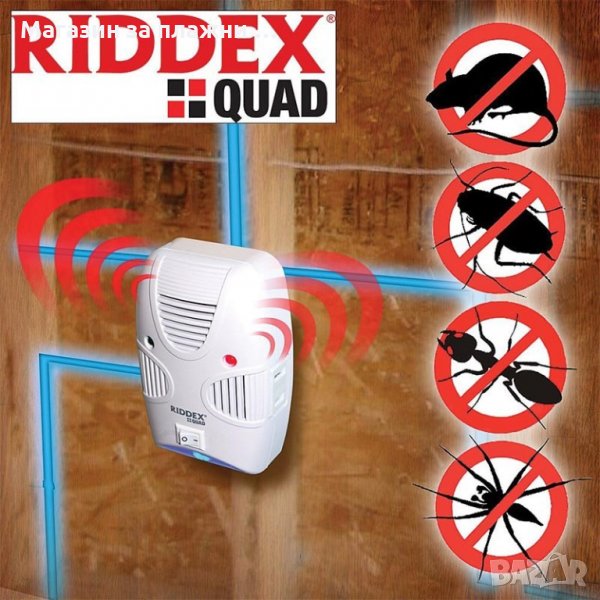 - Това устройство е едно от най-ефективните на пазара. Оставете Riddex Quad включен денонощно, за да предпазите трайно домът си от неприятните хлебарки, дървеници, мишки и всякакви други насекоми.
