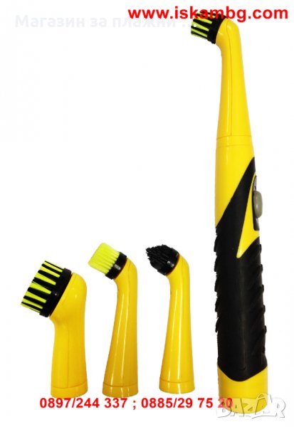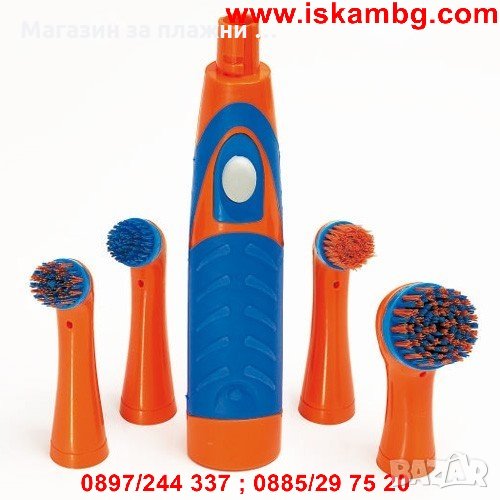 С тази електрическа четка за почистване на дома ще можете да достигнете и отстраните и най - труднодостъпните нечистотии при това с лекота, защото тя се върти сама и премахва успешно всичко. Тя е с 4 различни, въртящи се глави. Отгоре е с бутон и когато го натиснете започва да се върти. Тя е подходяща за почистване на мивки, фурни, бани, както и за тенджери, а също така можете да я използвате и за почистването на вашата кола: за прозорците, детайли от интериора, както и за джантите. Особено подходяща е за почистване на фугите на плочките на кухнята или банята, както и за готварската печка. Тя прави до 10 000 търкания в минута.