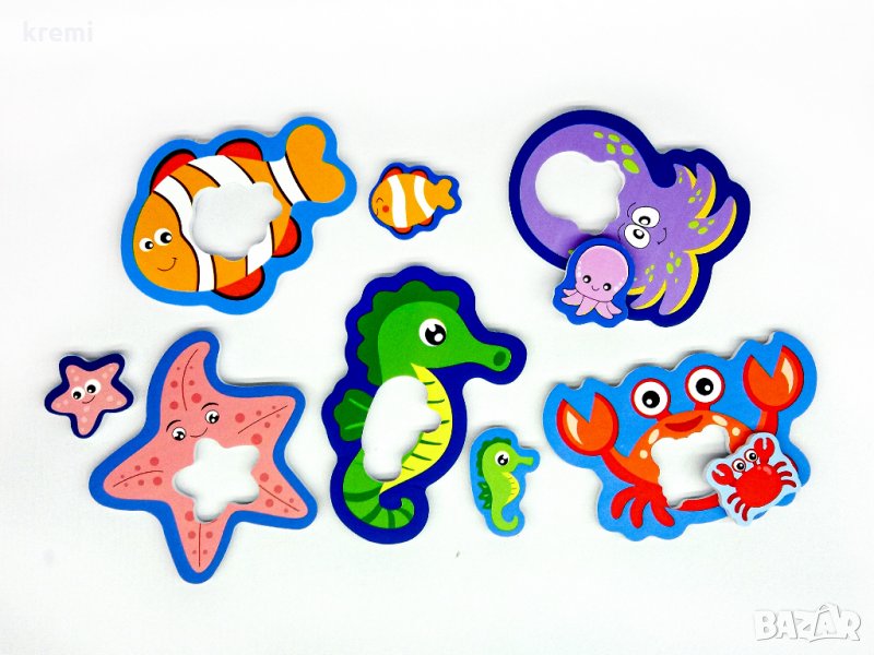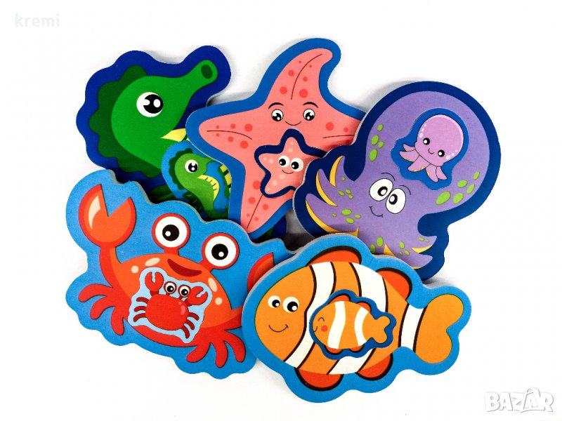 5 броя големи стикери за баня, всеки с малък изваждащ се стикер, тип пъзел малко- голямо.