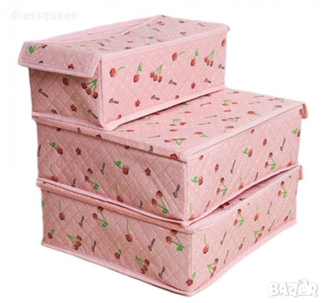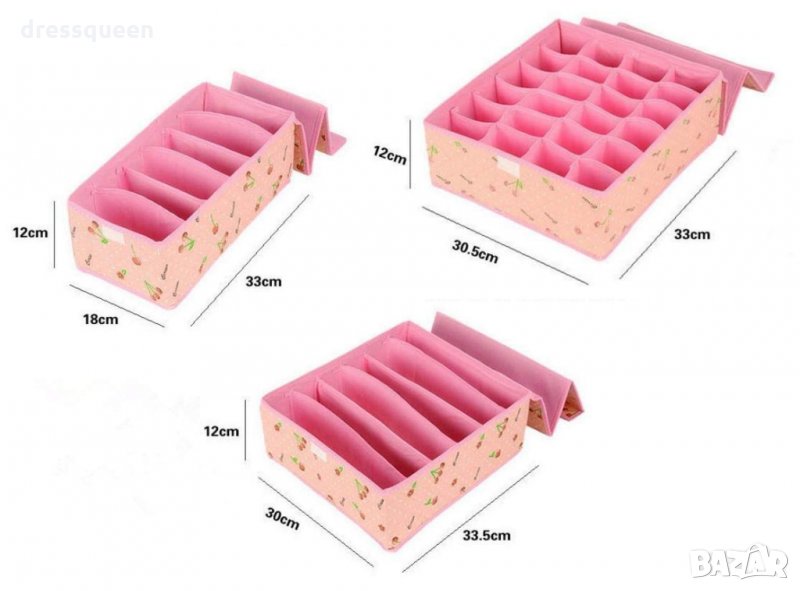С Комплекта от 3 броя Сгъваеми Кутии за Бельо, ще сложите край на хаоса в гардероба. Супер компактни сгъваеми кутии, с подходящи разделения на всяка от тях, за съответния вид бельо. Не една, а цели три кутии.