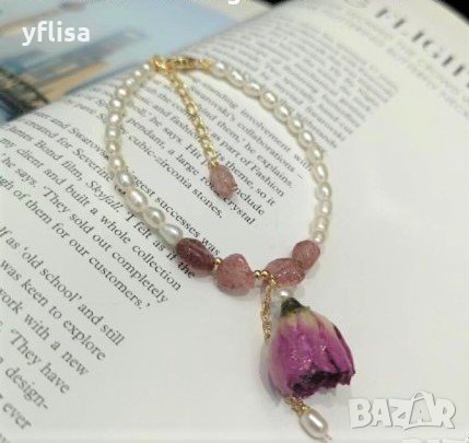 Уникална, лимитирана гривна от естествени култивирани перли и истинска роза !!!