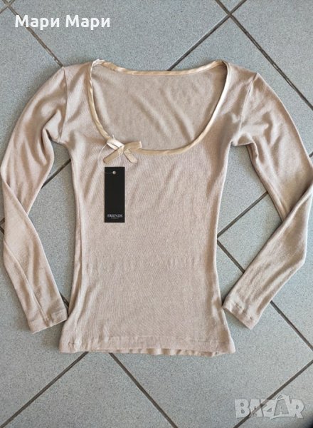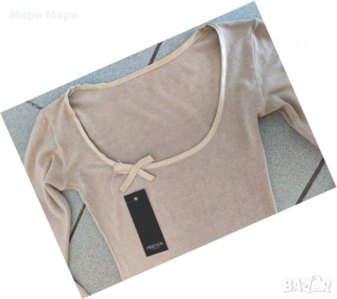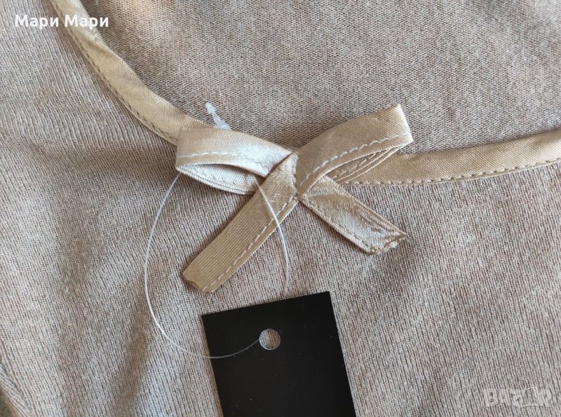 БЛУЗА от фино плетиво, сатен и панделка е деколтето. Бежов цвят.