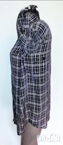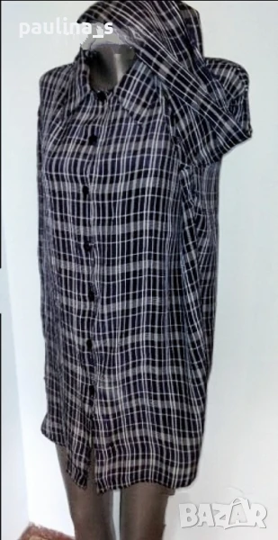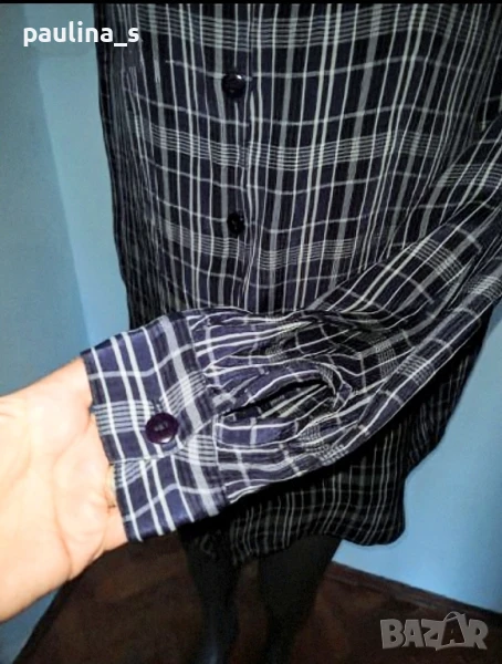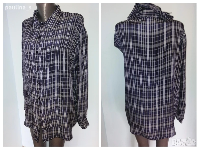 2️⃣ Колаж / Риза тип туника в каре от ацетатна коприна "No 1" collection. Цената е крайна 29,99лв. Дамска риза тип туника в каре от ацетатна коприна. Моделът е прав с извити долни краища. Копчетата са като перлени бижута. Покрива дрескода за офис. Да се отбележи - ризата е много голям размер, а манекенът е S, не стои добре, а на живо е перфектна.