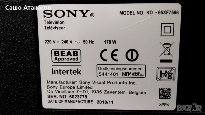 Модули от SONY KD-65XF7596 със счупена матрица (панел T650QVF06.6 )