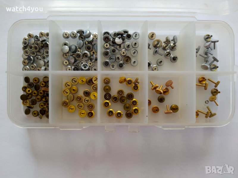 Разполагаме с богат набор от части за механични и кварцови часовници, будилници, стенни часовници: Баланси, Оси, Анкери, Ремонтоари, Коронки, Пружини, Колелета, Колела Уплътнения за заден капак, Уплътнители и др.