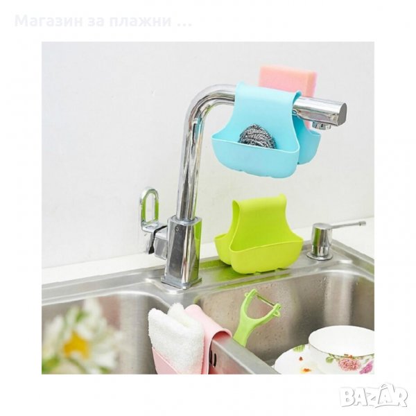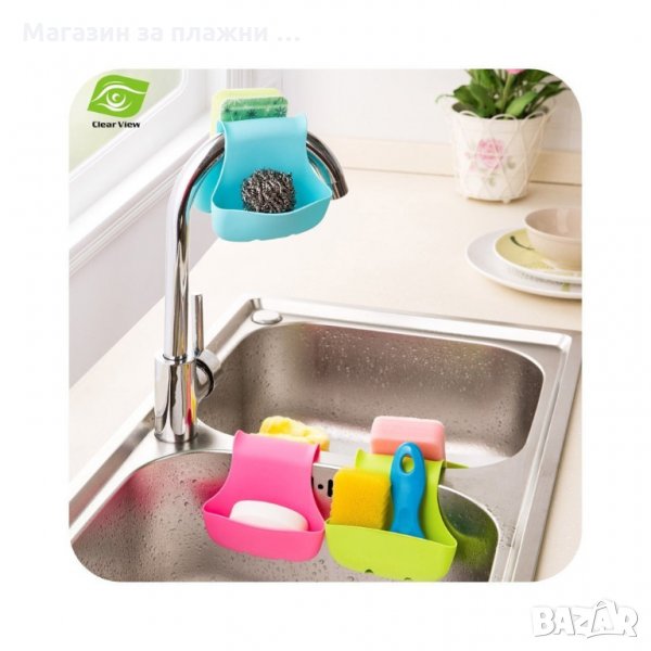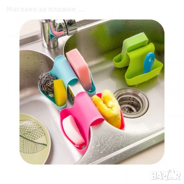 Удобен органайзер за двойната кухненска мивка. Спестява място на плота, идеален за кухненската гъба и четка за измиване на съдове. Лесно се поставя, лесно се почиства и не заема излишно място.