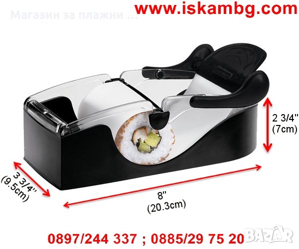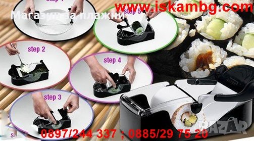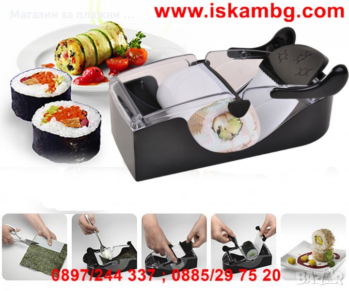 - Машинката е идеална за суши, рулца, банички, сърмички и всякакви гарнитури и мезета тип "роле".