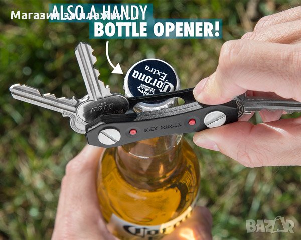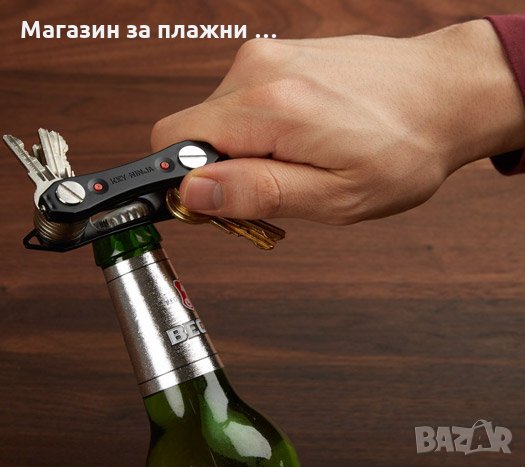 Можете да го използвате навсякъде, като заедно с него получавате и S-образна кукичка, към която да добавите и дистанционното за колата си. В средата, джаджата има дупка, която превръща продукта и в отварачка.