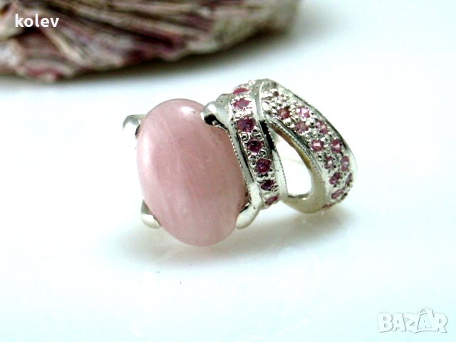 АВТОРСКИ Сребърен пръстен с РОЗОВ КВАРЦ и розови циркони/ размер 59-60