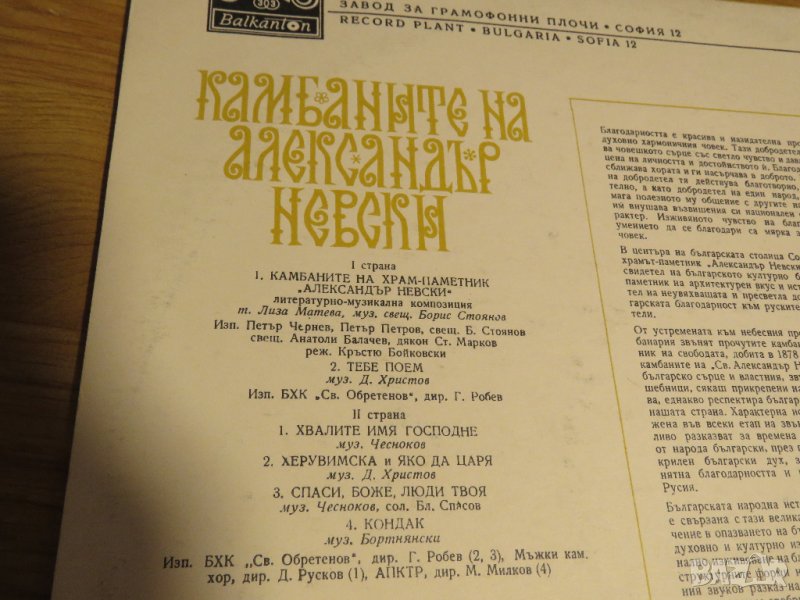 Грамофонна плоча - Камбаните на Александър Невски - издание 80те години - литературно музикална