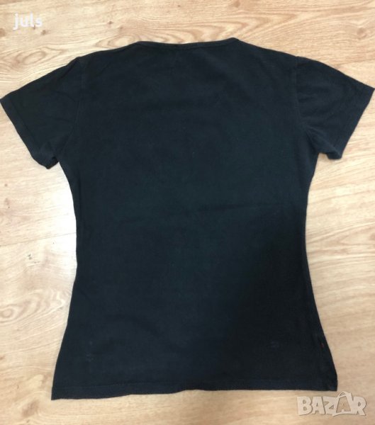 Черна блуза с къс ръкав на марката Morgan и надпис Moschino. Размер S-M. Дължина 55 см, широчина едностранно от мишница до мишница 45 см. Състояние: използвано. Памук и малко еластан. Цена 5 лв. Или подарък при закупуаане на 2 артикула от раздел дрехи или покупка над 50 лв.