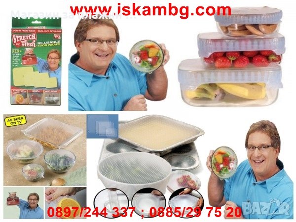 Stretch And Fresh е сет от 4 бр. капаци, изработени от висококачествен еластичен силикон, който може да се разтяга до три пъти повече от първоначалните си размери.