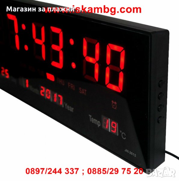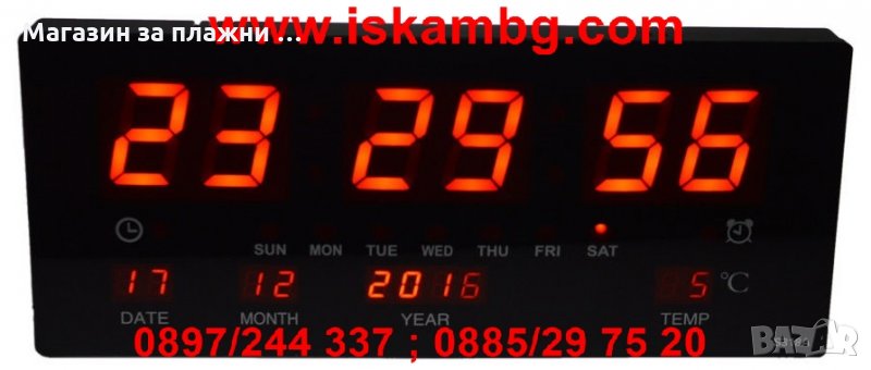 Tова е първото и най-важното, часовник с достатъчно голям дисплей. Kато поставите такъв часовник на стената у дома или в офиса, винаги ще можете да видите отдалеч колко е часът и друга информация, която искате да знаете показана на дисплея. Модерен голям стенен цифров часовник с календар и термометър. Идеален за офис и промишлени помещения. Модерен голям стенен електронен LED часовник с календар и термометър, лесен за използване.