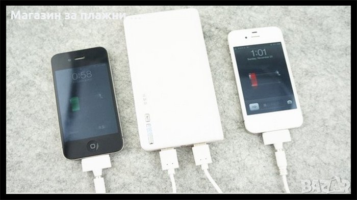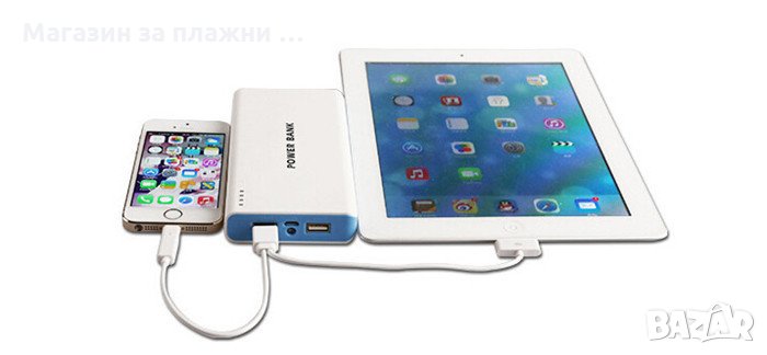 * Капацитет: 3.7V 20000mAh * Конектори: MicroUSB, стандартно USB * Входящо напрежение: DC 5V 1A * Изходящо напрежение: 2 броя USB DC 5V, 2.1A, 1А * Пълно зареждане на Power Bank 20000mAh : около 5 часа с 5V/2A външно зарядно устройство * Цвят: Бял * Размери: 150*75*22 мм * Кабел с накрайници за повечето марки телефони и устройства: microUSB, mini USB, Iphone 4, iphone 5, Nokia.