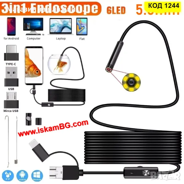 Представяме ви 3в1 Камера ендоскоп за телефон или компютър с мека връзка и 5.5 мм дебелина на камерата.