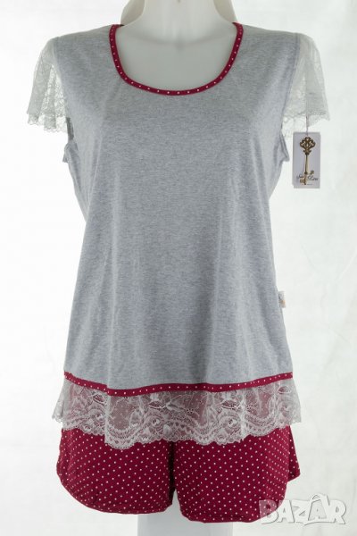 Дамска къса пижама в сиво и бургунд марка Hamana - XL/2XL