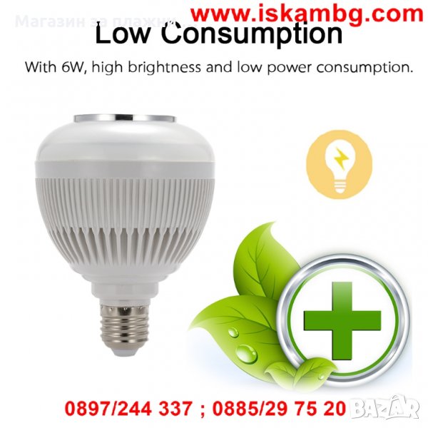 Представяме ви LED лампа с Bluetooth контрол и високоговорител. Можете да контролирате светлината или високоговорителя на устройството, чрез приложение за iOS или ANDROID. След като инсталирате приложението на вашето SMART устройство, трябва да се свържете лампата с Bluetooth към телефона или таблета си. Вече контролът е Ваш. Благодарение на вграденият говорител тази лампа е тонколона на телефонът Ви. След като нагласите светлината по Ваш вкус, можете да си пуснете любимата музичка от телефона и остава само да се отпуснете.
