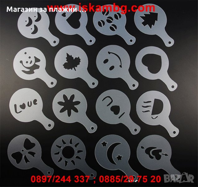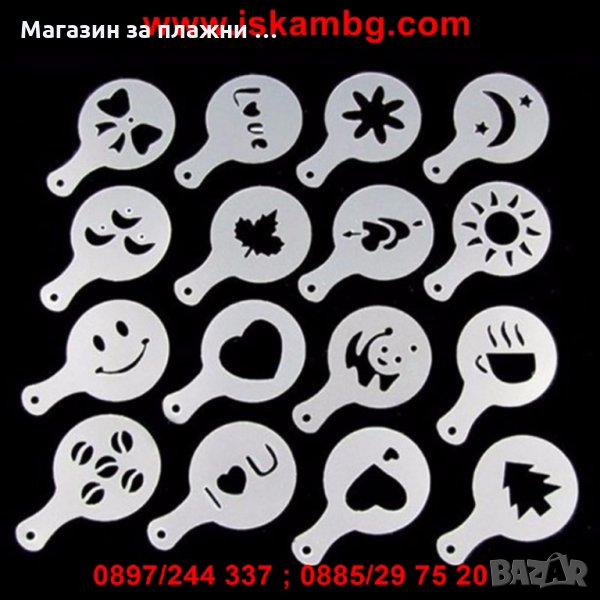 Шаблони за декорация на кафе, мляко и капучино - 16 бр