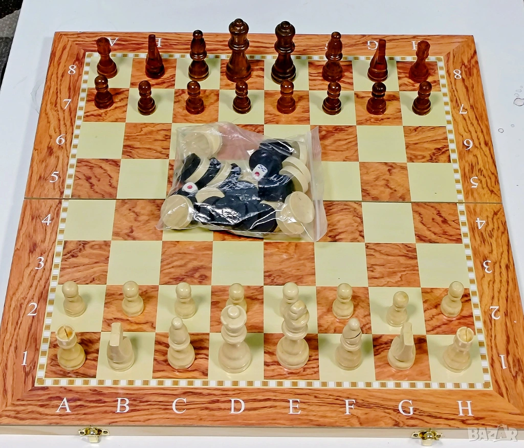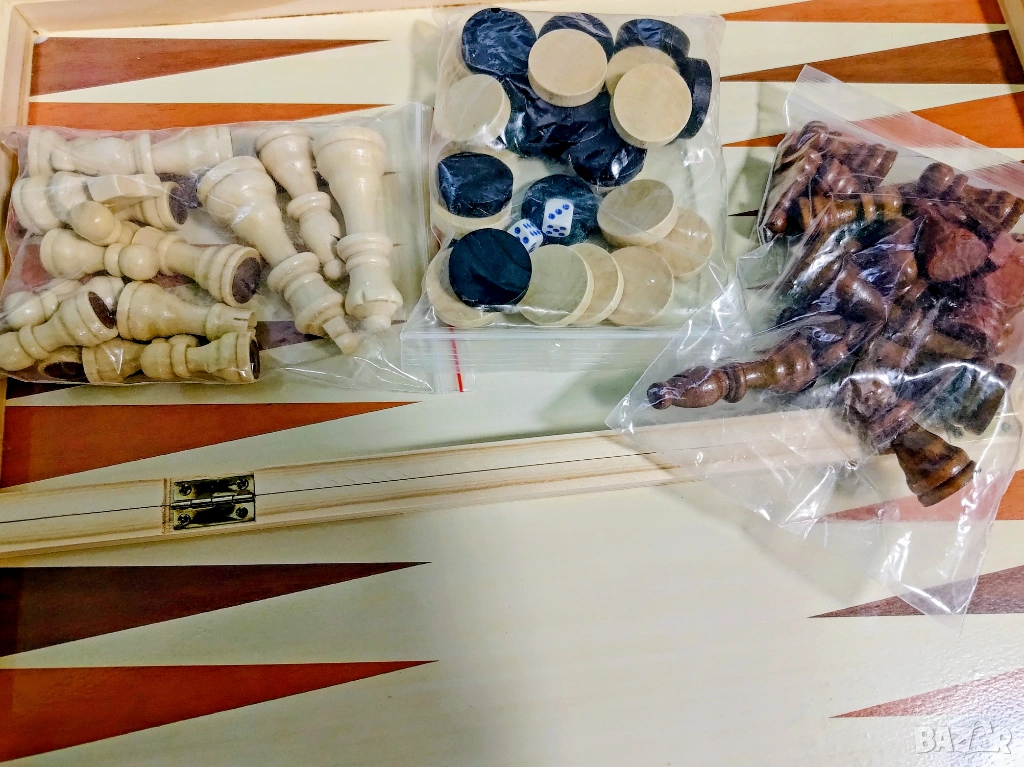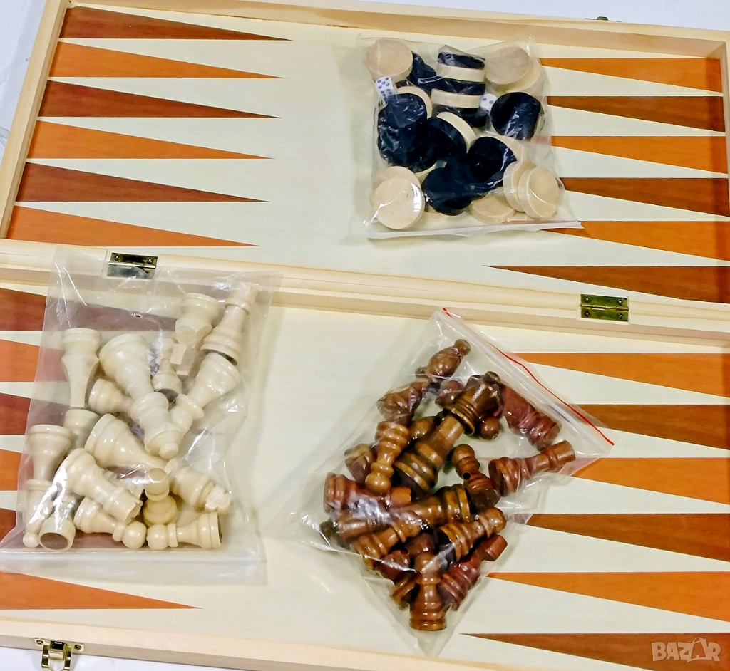 Това не е малък туристически комплект, а голяма дървена дъска, подходяща за сериозна игра у дома, в офиса или вилата.