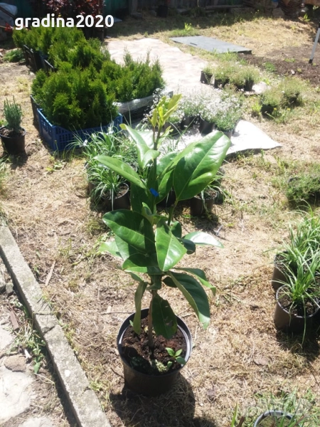 Магнолия Грандифлора “Magnolia Grandiflora” е вечнозелена с с приятен аромат , която цъфти с големи, бели цветове, като цъфтежа на магнолията е много продължителен . .Много добре реагира на почвеното подхранване с течни торове и редовната поливка. На височина достига до 5-6м.