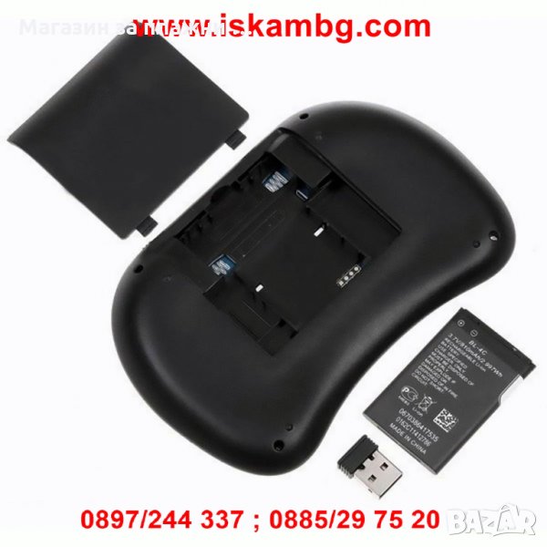 Пакетът Включва: Мини Клавиатура wireless, receiver/adaptor USB, кабел зарядно mini USB .