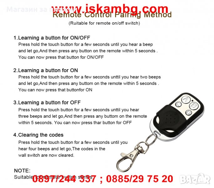 Ключ за осветление с Дистанционно - СЕНЗОРЕН → Обява 28529087